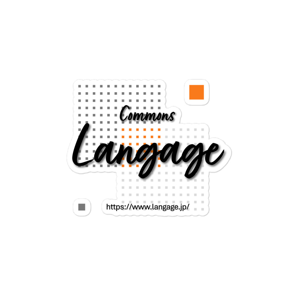 コモンズ・ランガージュのオリジナルステッカー(白)です。 3種類のサイズからお選びください(サイズによって料金が異なります)。 3×3(約8cm×6cm):500円 4×4(約10cm×8cm):550円 5.5×5.5(約14cm×11cm):600円 こちらの商品はご注文を頂いてからお作りするため、お届けまでにお時間をいただいております。