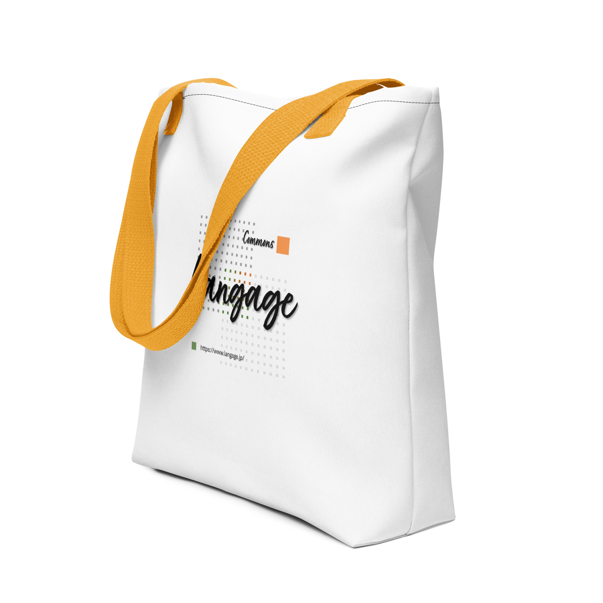 コモンズ・ランガージュのオリジナルトートバッグです。 • 100% ポリエステル • サイズ: 38.1 × 38.1 cm • 容量: 10リットル • 持ち手の長さ 30 cm、幅2.5 cm こちらの商品はご注文を頂いてからお作りするため、お届けまでにお時間をいただいております。